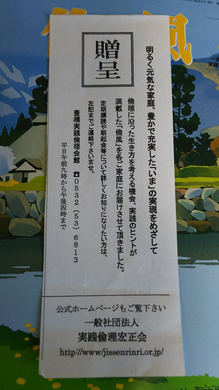2019年03月27日 倫風3号 歯医者さんの待合室に、どうぞご自由にと置いてあった。会長先生の後継者が決まっていた。https://www.aeon.jp/sc/nagoyaminato/event/event_e141795.html昨夜の演歌の歌番、良かった。 「他宗教の方との対話 交流 研修等」カテゴリの最新記事 前の記事次の記事 コメント一覧 コメントフォーム 名前 コメント 評価する リセット リセット 顔 星 投稿する 情報を記憶